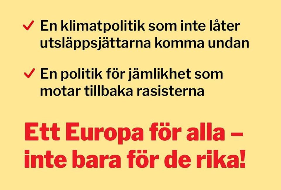 Så vänner, feminister, socialister, klimataktivister. Antirasister, fackliga aktivister – vänsterpartister. Kom med och ta fajten om några av vår tids ödesfrågor; mot de ohållbara ekonomiska klyftorna, mot högerextremismen och för en rättvis klimatomställning!”