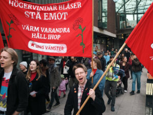 I Sverige har vi en blåbrun höger/SD-regering. Dom tvingar fram enorma nedskärningar i välfärden och särskilt sjukvården befinner sig i kris. Bara i Östergötland har man skurit ner med ett 1000-tal anställda. Yttrandefrihet, folkbildning och rättssäkerhet ifrågasätts. Migrationspolitiken är helt omänsklig och rasismen breder ut sig.