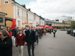 I Palestina pågår varje dag – också idag – ett direktsänt folkmord. Israel har mördat lång över 50 000 försvarslösa människor – majoriteten kvinnor och barn. Dom har sprängt nästan vartenda sjukhus och varenda skola i Gaza. Dom vägrar släppa in mat och medicin. Dom mördar medvetet hjälparbetare. Israel är idag en rasistisk apartheidstat. Och Sverige och EU har blod på sina händer – Dom stödjer aktivt folkmordet genom samarbete, handel och genom att hålla käften om folkmordet.