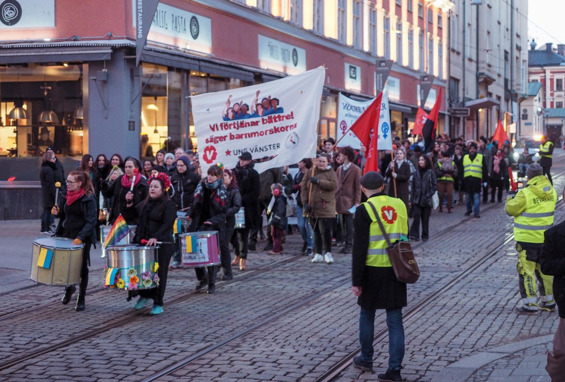 ”- Kvinnors inkomster är i genomsnitt 23% lägre än mäns, och varje dag efter klockan 16:12 jobbar kvinnor gratis i Sverige. Detta är helt oacceptabelt. Kvinnors situation på arbetsmarknaden är en av nutidens största jämställdhetsfrågor. Att kvinnor och män ska ha lika lön för lika arbete och att alla som vill ska ha rätt att arbeta heltid måste vara självklart. Därför driver vi i vänstern på för arbetstidsförkortning och höjda löner i kvinnodominerade yrken. Vi kräver lön att leva på och tid att leva!