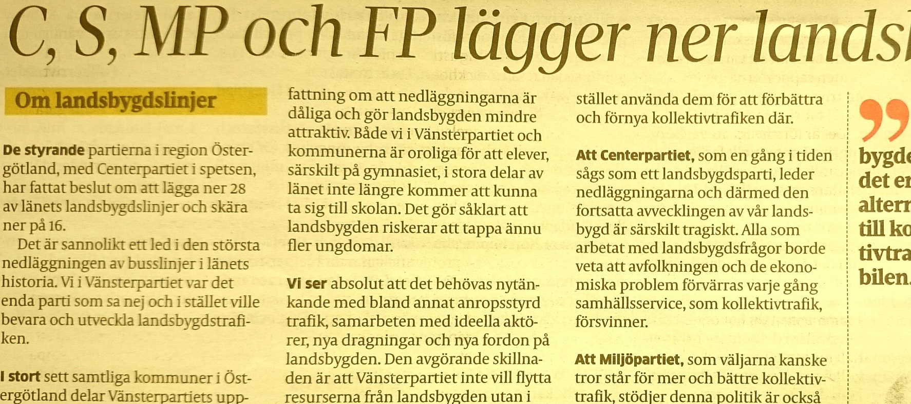 Franco Sincic (V), Trafik och samhällsplaneringsnämnden, skriver i Norrköpings Tidningar om Region Östergötlands beslut att lägga ner ett antal landsbygdslinjer.