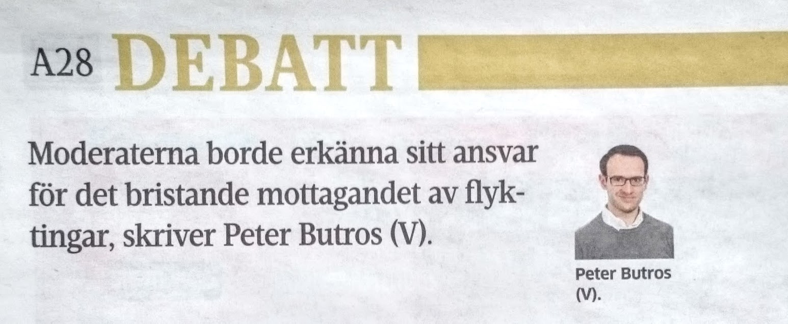Peter Butros, ordförande Vänsterpartiet Norrköping, skriver i Norrköpings Tidningar lördag den 23 januari ”M urholkade ju vårt flyktingmottagande”