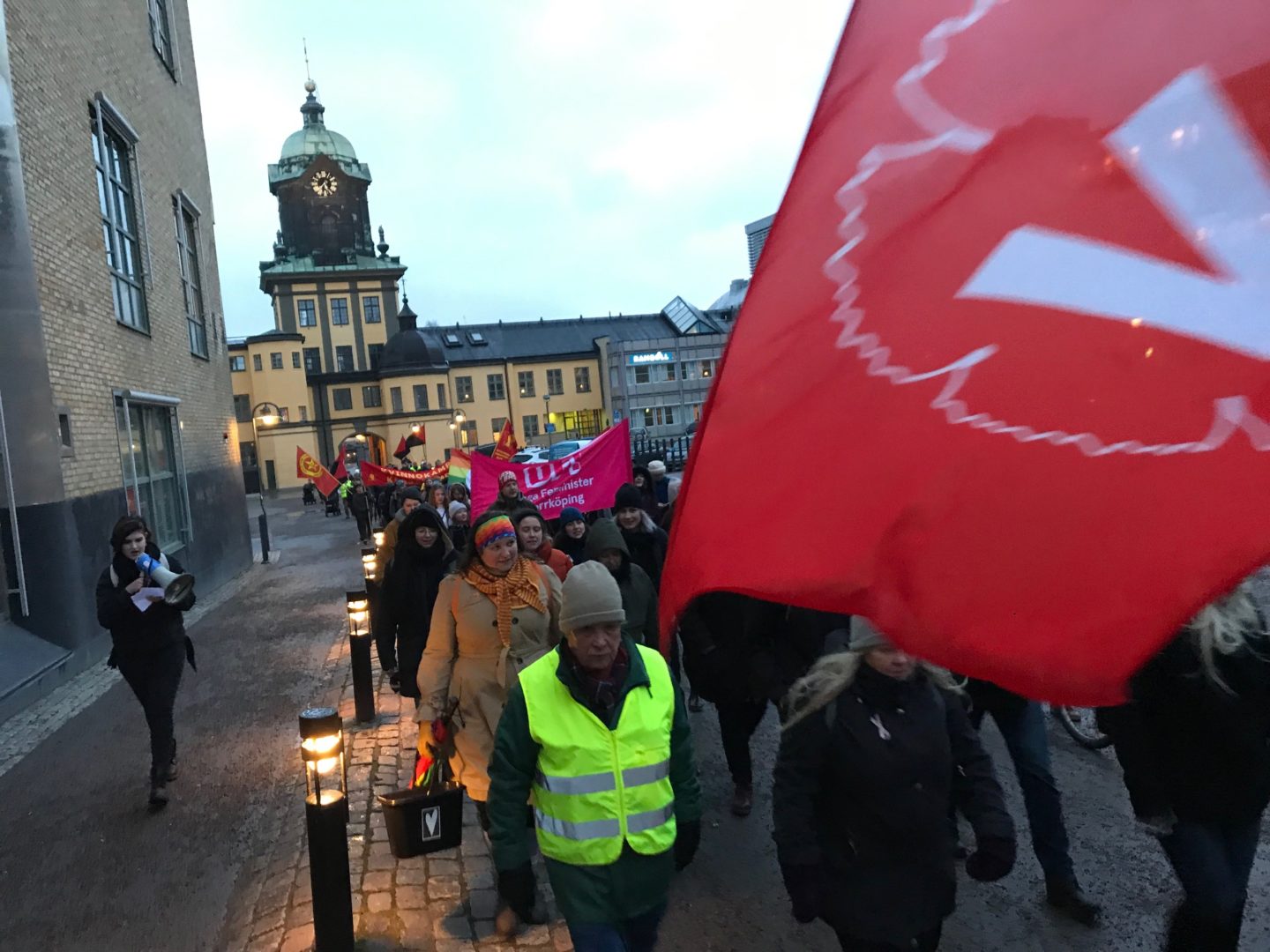 Under parollen Kamp mot sjuka arbetsvillkor! gick demonstrationståget från stadsbiblioteket via Drottninggatan mot Industrilandskapet, med slutdestinationen kårhuset Trappan. Arrangemanget gjordes gemensamt av Vänsterpartiet, Ung vänster, Feministiskt initiativ och Unga feminister. Flera andra privatpersoner och föreningar slöt upp i den feministiska aktionen.