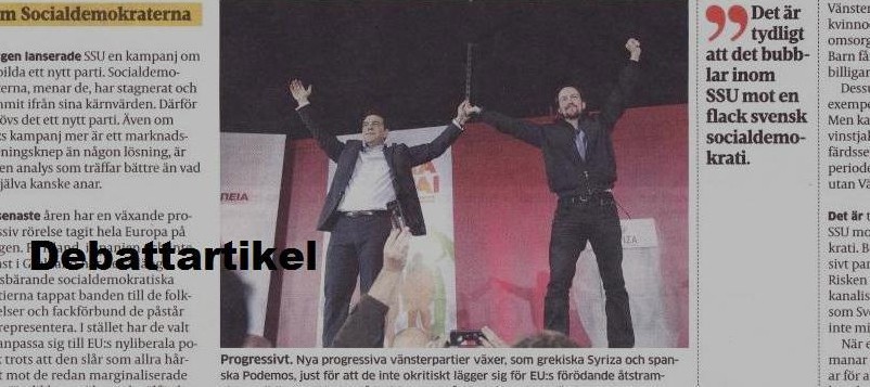 Debattartikel i Norrköpings Tidningar. ”V påminner S om att vara S”