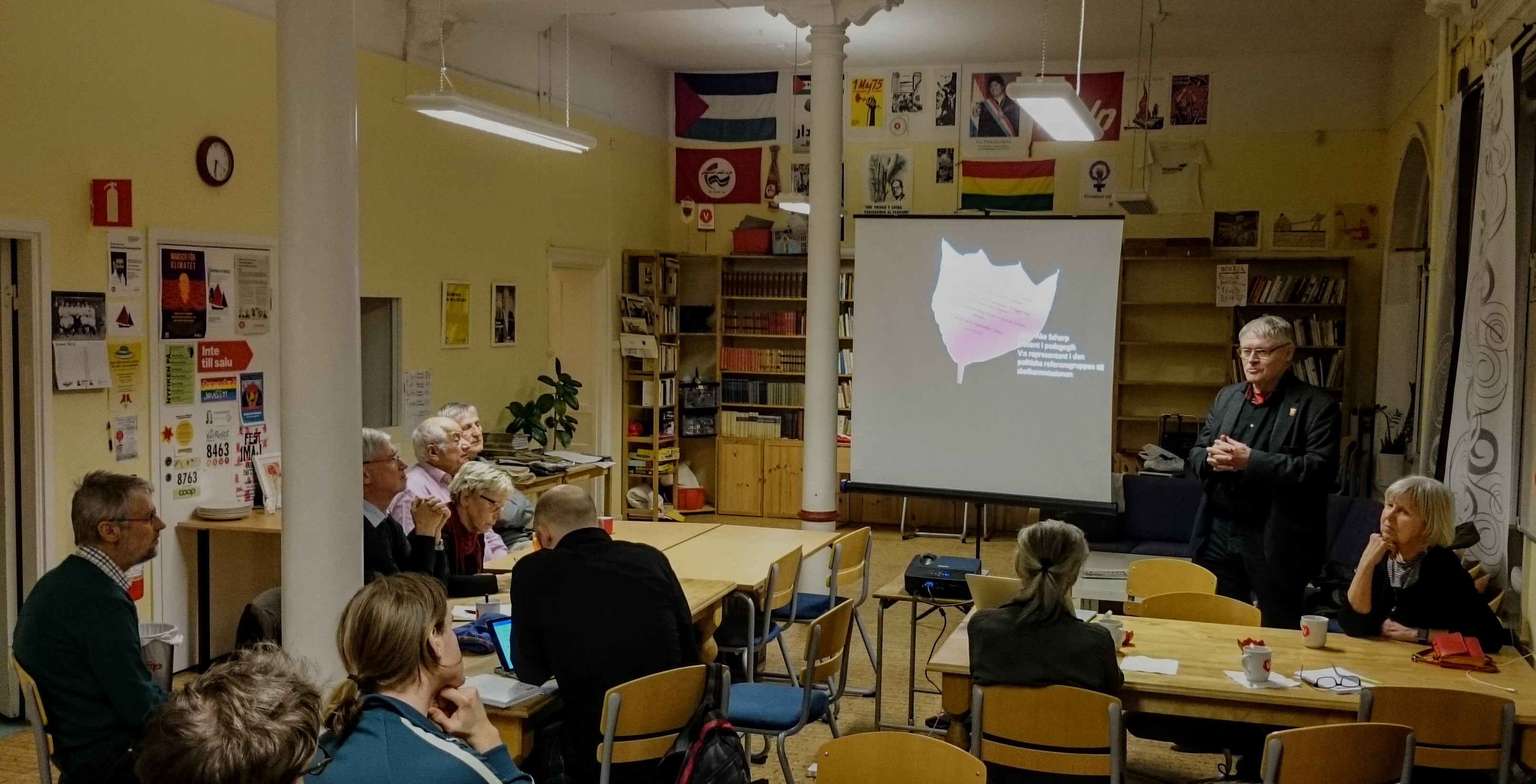 Onsdagen den 17 januari anordnades ett V-café med fokus på vår välfärd. Denna kväll handlade det om de äldres välfärd och i första hand hemtjänsten. Li Teske, ombudsman för PRO i Östergötland, presenterade organisationen och berättade om de vanligaste problemen som de ser det, och om vilka frågor PRO driver.