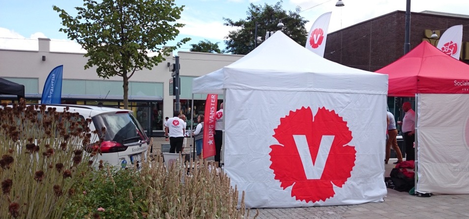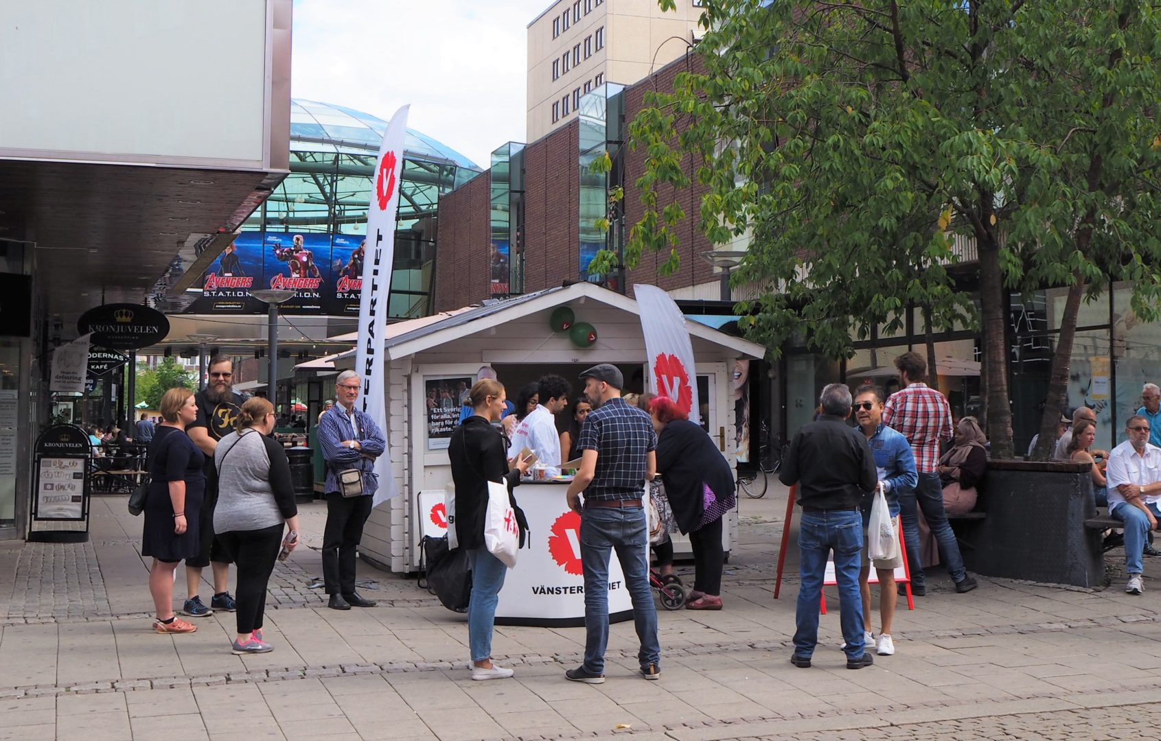 Valstugan står på Drottninggatan precis utanför HM. Den kommer att vara öppen under dagtid varje dag fram till valet den 9 september. Alla intresserade är välkomna, för att få information om Vänsterpartiet och för en pratstund.