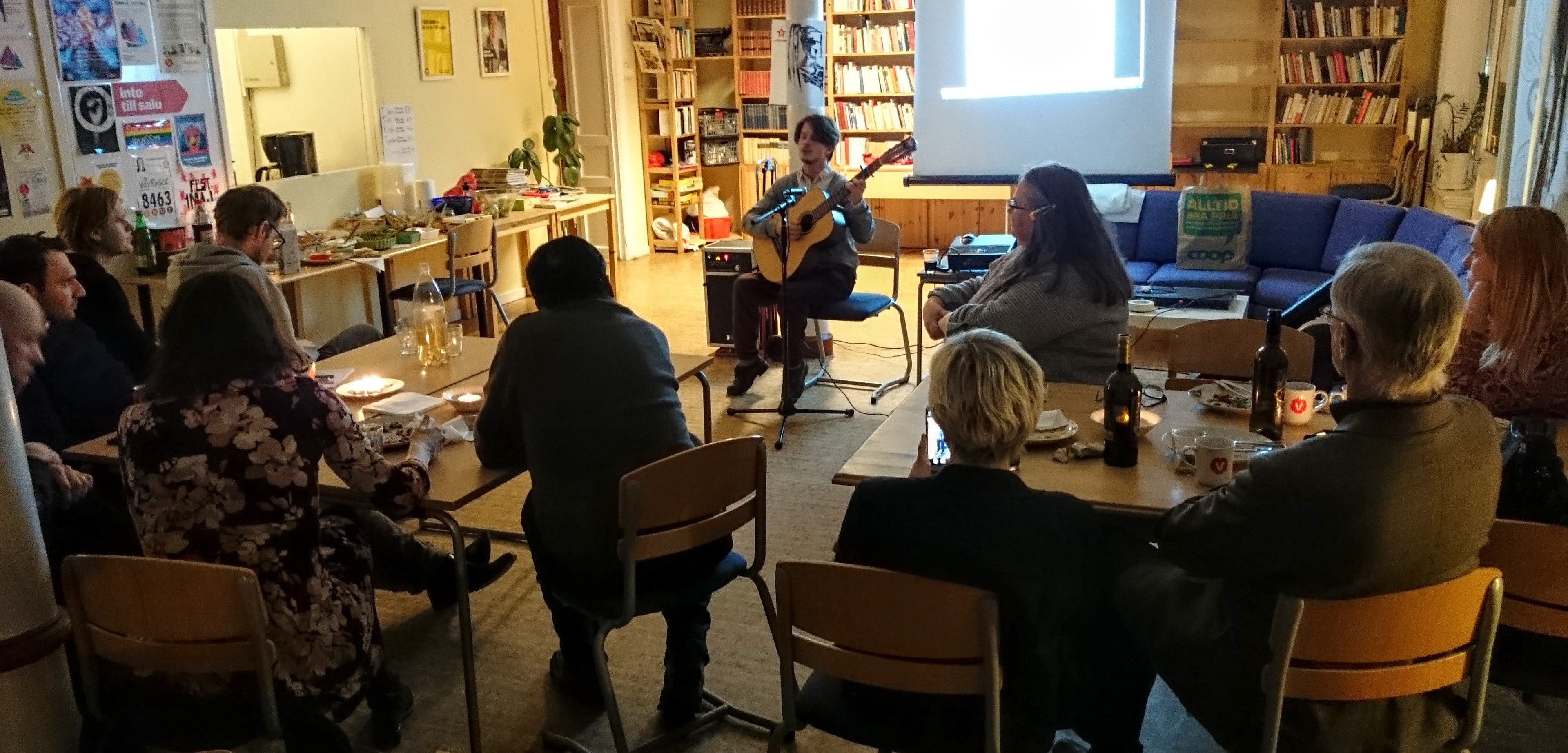 Linda Snecker höll ett föredrag om sitt arbete i riksdagen, och om resan hon gjorde till Palestina i januari.