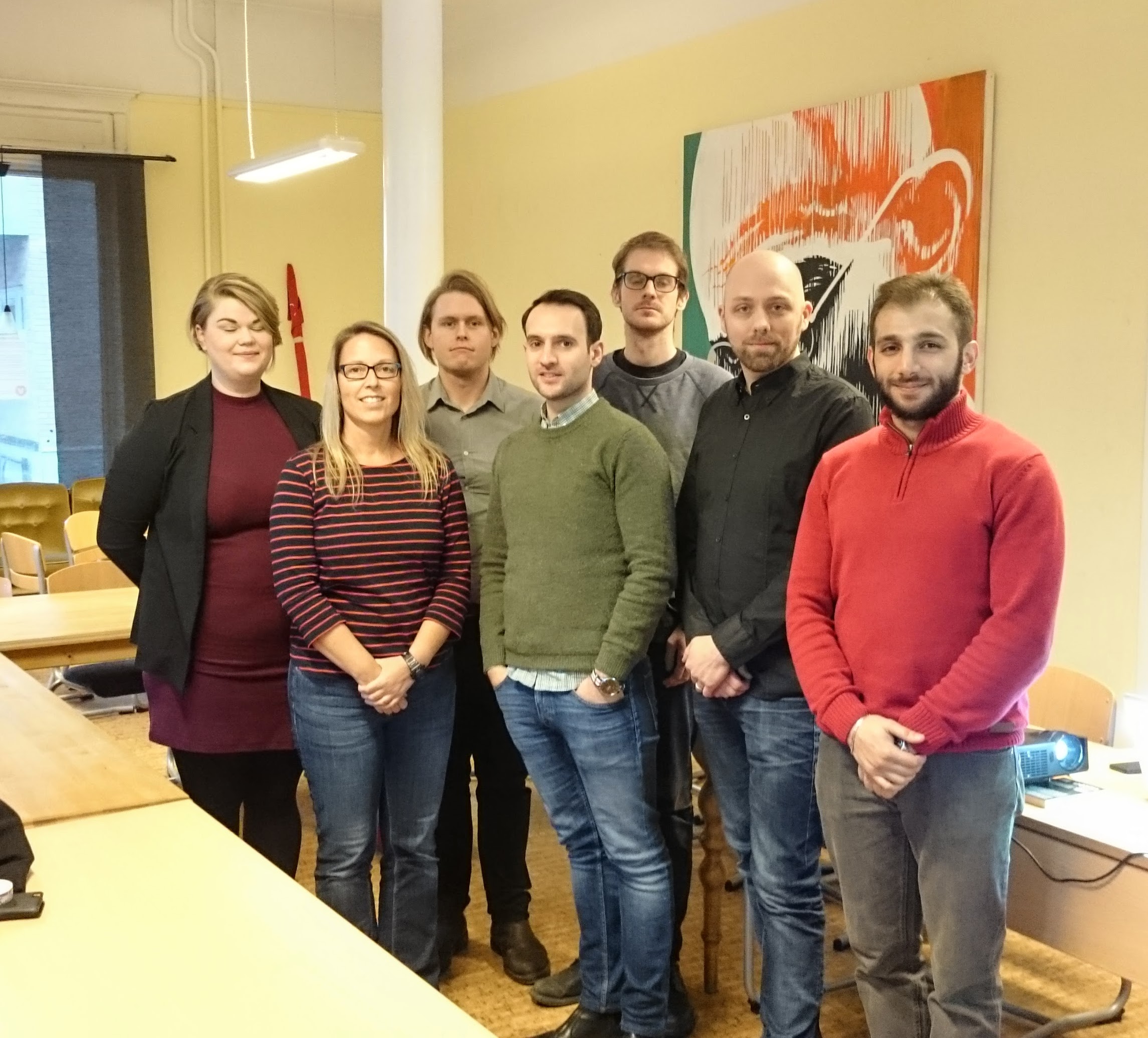 Delar av den nya styrelsen. Fr vänster Julia Linander, Anna Björkdahl, Olof Carlstein, Peter Butros, Linus Nordmark, Nicklas Ellehammar Lundström och Hammam Skaik.