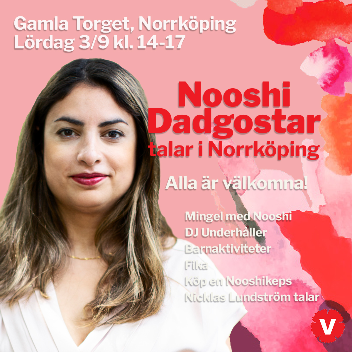 WOW! Nooshi Dadgostar kommer till Norrköping nästa lördag 3 september! Nooshi har tyvärr blivit sjuk. Ida Gabrielsson, vice ordförande, håller tal. Vi bjuder in till fest på Gamla torget mellan 14-17 med DJ-musik, barnaktiviteter, fika och möjlighet att mingla med Nooshi. Självklart tar vi med valrörelse-merch så att du kan köpa din egen Nooshi 2022-keps! Man […]